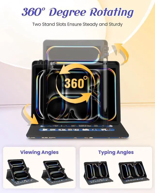 Rotating Stand: This for iPad Pro 13 inch case 2024 with an functional rotating stand design, supporting your devices to switch between landscape and portrait orientations. While 2 anti-slip strip design allow for multiple horizontal stand angles for comfortable viewing or typing ^^