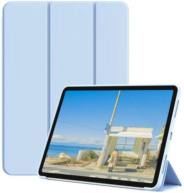 KVTVOU Case for iPad Air 11 Inch (2025/2024, M3/M2), for iPad Air 5th/4th Gen (10.9 Inch, 2022/2020) Without Pencil Holder, Slim Trifold Stand Smart Cover & Soft TPU Back, Auto Wake/Sleep, Sky Blue