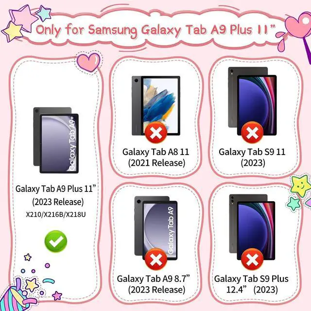 Models]: Only fit for Samsung Galaxy Tab A9+/ A9 Plus 11 inch 2023 (Model: SM-X210/SM-X216/SM-X218). Please confirm your model number before purchasing this case for samsung tablet ^^ [360