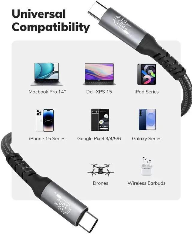 USB C Cable 20FT, USB C 3.1 Gen 2X2 Cable, 4K60Hz Monitor Video Output, 10Gbps High Speed Data Transfer, 100W Fast Charging, for Car Carplay iPhone 16, MacBook, Action Camera, Portable Monitor