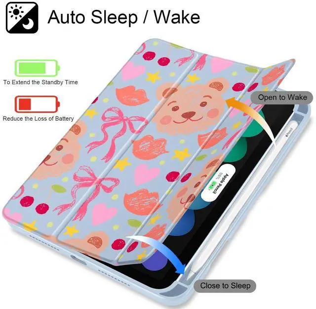 Multi-function Stand: Slim Lightweight Trifold Stand provides viewing and typing stand mode, Magnetic smart cover supports auto wake & sleep function. Powerful magnet secures the case closure, more convenient to snap on and off the tablet, extend the battery life ^^ Built in