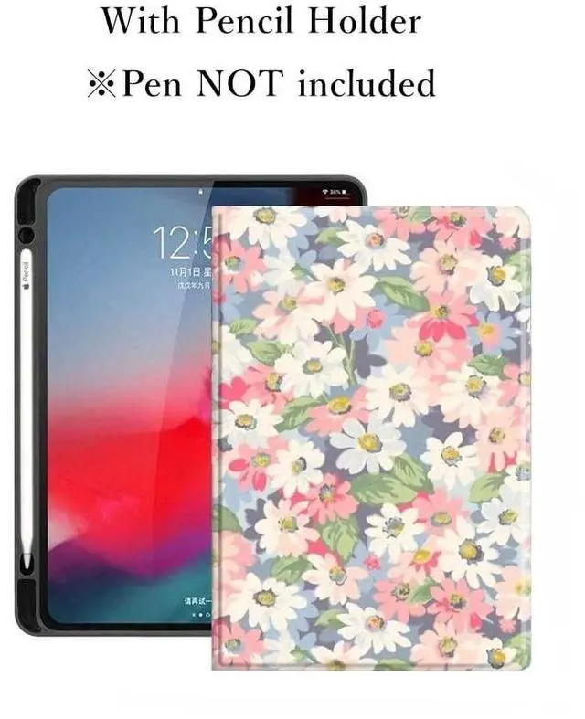 Floral iPad Case Flower Pattern Cute Slim Leather Folio Smart Cover with Pencil Holder