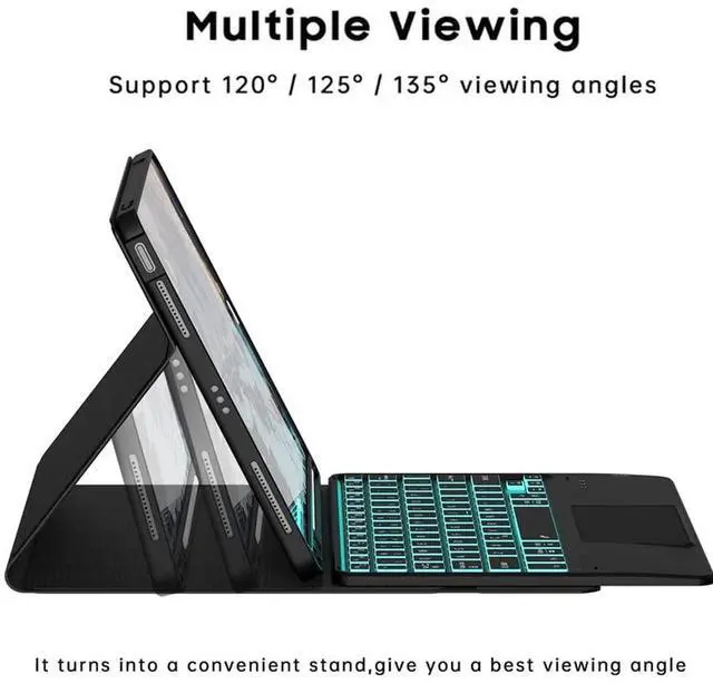 >>Interior: soft microfibre protects your tablet from being scratched; Anti-slip material prevents the tablet from sliding down. Turn Your Tablet into a Laptop>>Wireless keyboard connects to your tablet automatically, making typing faster and more accurate than on a touchscreen. >>Made of ABS material, well-spaced keys enable users to type smoothly, providing a pleasant typing experience for users.