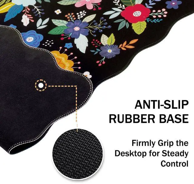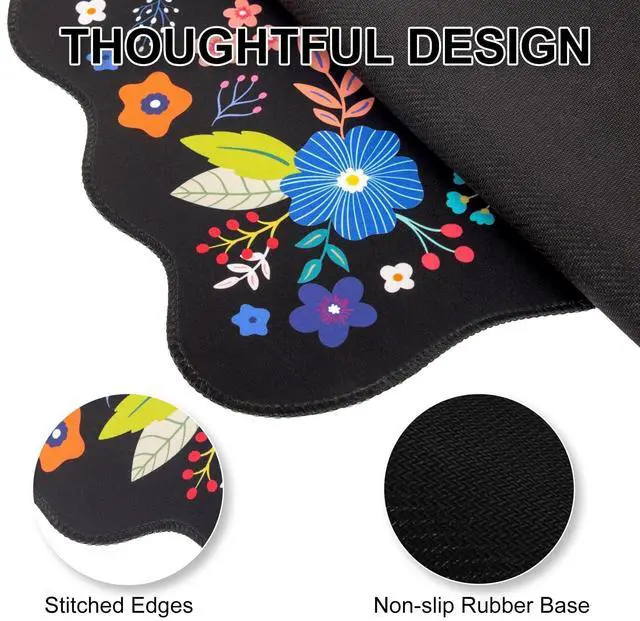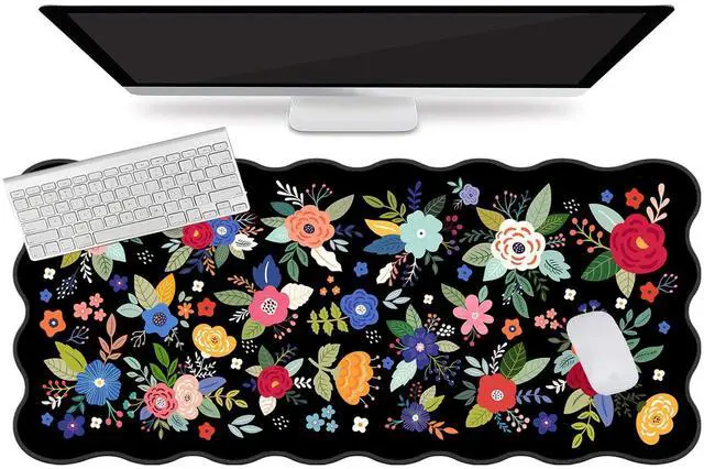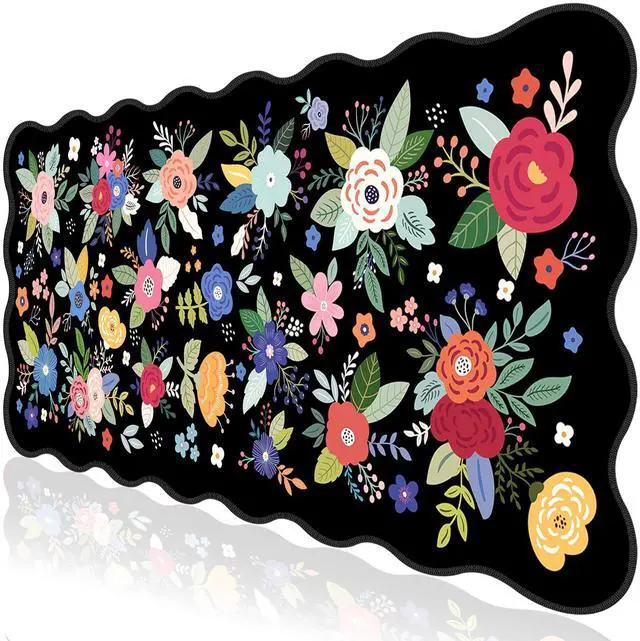 Ultra-smooth Surface: Black Floral one piece mouse pads for desktop with comfortable Lycra surface and breathable material. It's flexible enough to be rolled up for easy transport. You can flexibly and precisely control the mouse movement speed during your working or gaming. Its compatible with all mouse types, including mechanical, wireless, and optical mice. Let your mouse slide smoothly and precisely along the large mouse pad, and also protect your desktop, laptop, keyboard, mouse ^^