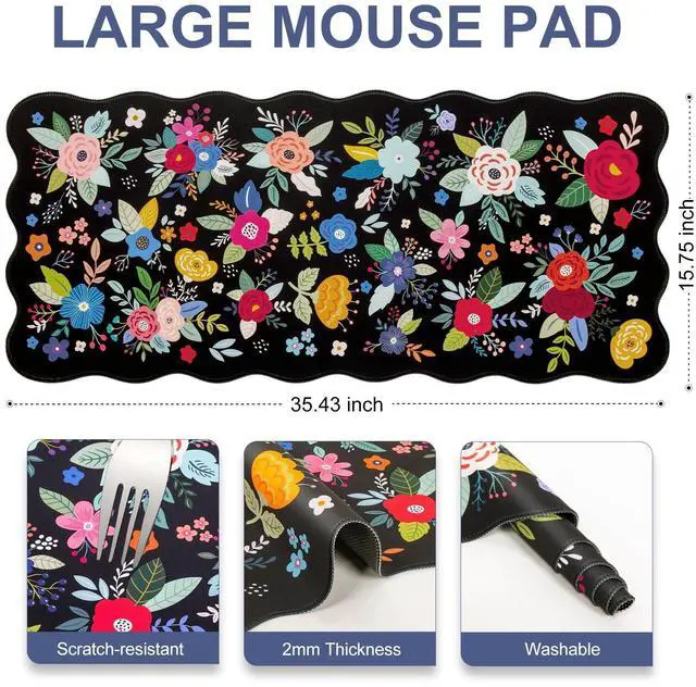 Pad Size: XXL mouse pad measures 35.4" x 15.7", this botanical flowers leaves desktop mat provides ample space for your mouse, gaming keyboard, and other desktop essentials. Its large size keeps your workspace neat and organized, perfect for both gaming and office use ^^