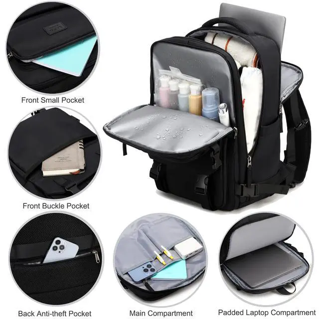 ^^ Practical & Safety: A luggage strap allows the flight approved carry on backpack fit on luggage/suitcase, slide over the luggage upright handle tube for easier carrying. With a hidden theft proof pocket on the back protect your valuable items from thieves. Well made for international airplane journey and day trip as a tour gift for men& women ^^