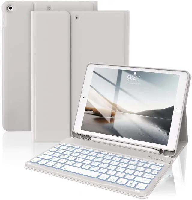 • 7 Colors Backlit Detachable Keyboard: This for ipad 9th/8th/7th Generation Keyboard Case features laser-etched illuminated keys and offers 7 LED backlighting colors and allow vibrant colors to shine in the dark, 3 brightness options for a comfortable typing experience even at night. Greatly improved your iPad productivity. When not needed, the keyboard can be detached and the iPad case or keyboard can be used independently