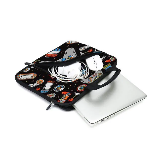 MATERIAL: 100% brand new neoprene, bag high quality printing on both side of the sleeve with handle soft inner, external pocket for mouse, power adapter, usb, etc.