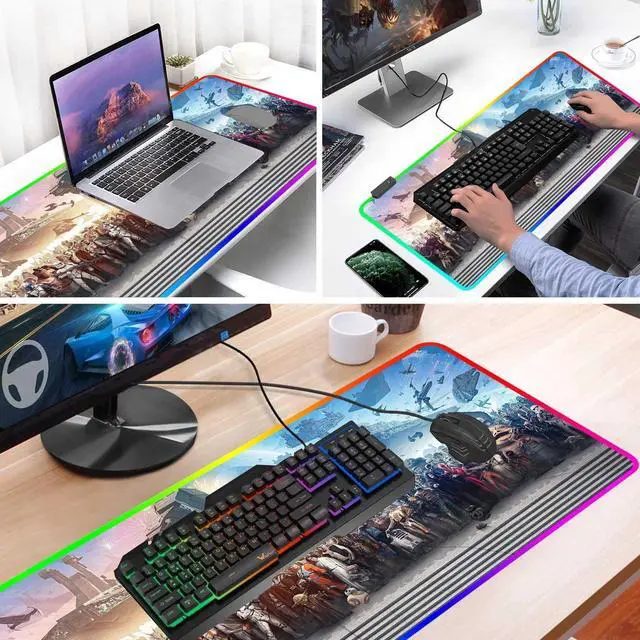 Extended Large Size Gaming and Office RGB Mouse Pad ---Take care of your desktop to keep it clean. We focus on large mouse pad, to provide you with the best quality. 1. Non-Slip Rubber BaseThe anti-slip rubber bottom prevents this mouse pad from sliding or moving. You don't have to worry about it sliding or drifting across your desktop even during the most intense gaming sessions to avoid annoyance while you use it. 2. Keyboard Pad With Ultra Smooth SurgaceThe large mouse pad can provide smooth and precise mouse control and help you get better performance in games or work.