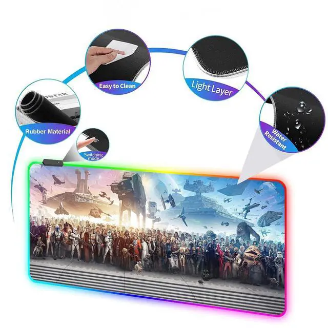 3. Edge Covering DesignStitched frame ensures mousepads doesn't fray or fall apart like other mouse pads, provide a long service time and prevent the top layer strip away from the base. 4. RGB BacklitThe RGB mouse pad has colorful lighting colors, in order to create a unique gaming atmosphere, RGB mouse pad is your best choice. 5. Makes Your Desktop DifferentVisually appealing big mouse pads that will accommodate different users' needs. The RGB effect can add color to your desktop, bring a cool gaming experience, and give your gaming/work a new experience.