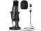 Clear Sound Quality with Smart Noise-Cancelling The microphone features an aluminum-coated vibrating diaphragm and professional DSP smart chip for accurate sound capture. Enjoy crystal-clear audio without static noise, even in noisy environments ^^ Enhanced Compatibility & Versatility Comes with a USB-A to USB-C adapter for use with smartphones. Equipped with a headphone output, mic gain control, volume adjustment knobs, and a smart noise-cancelling button for superior performance ^^ Stylish & Sturdy DesignOur PC microphone features a sleek, cylindrical design mounted on a solid aluminum alloy base. The base provides excellent anti-slip and anti-shock properties, ensuring enhanced stability and a modern look for your setup ^^ User-Friendly Control Options Easily adjust the microphone and headphone volume with dedicated knobs, and toggle the mute function with one button for hassle-free operation ^^ Plug and Play, No Extra Power Required USB-powered condenser microphone with broad compatibility for various systems, including Windows, Linux, and streaming/recording software like OBS and Cortana