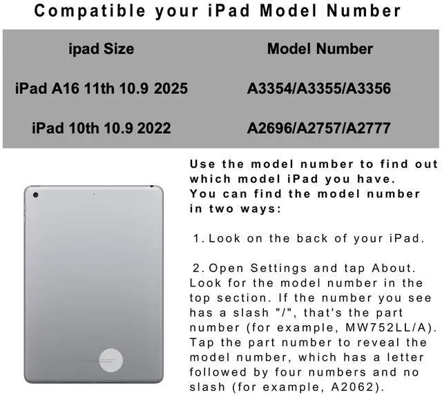 Fit for ipad 10.9 inch 11th A16 2025&10th Generation 2022 A3354/A3355/A3356/A2696/A2757/A2777 (Please turn over your iPad check the model number at first before purchase) ^^