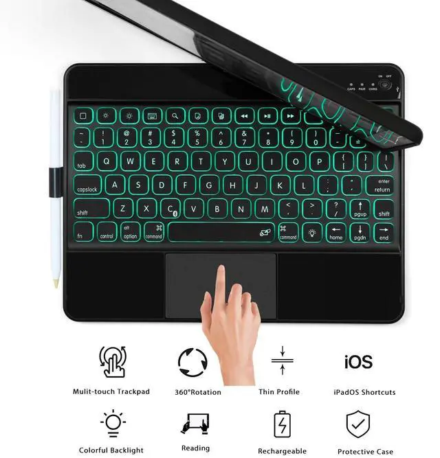 ENHANCED TECHNOLOGY: 3 levels of brightness and 7 vibrant colors backlit keyboard allows you to use your iPad at all hours, day and night. Not to worry if you drift off - the case works with your device's auto sleep/wake function to keep safe all the important things you may be working on