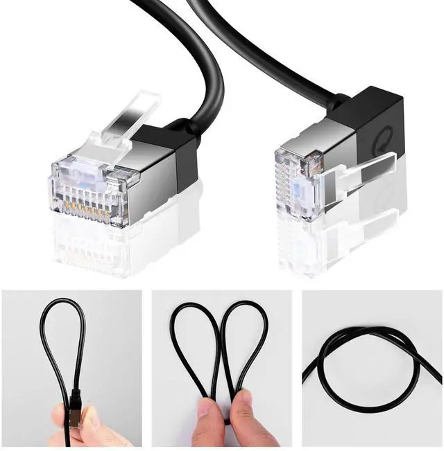 The Dutevolns network Category 6 UTP slim network patch cord has all the advantages of a standard Category 6 network cable, but with a much smaller diameter And our product not only has a slender body, but also has a unique elbow design. In dense cable installations, there is more possibility. 90 degree link cables with no dead corners have a cleaner and more organized appearance, and their thinner size helps promote better air circulation for devices in network cabinets. The reduction in cable size also means it is more flexible, making it the perfect choice for installation in cable runs in corners and narrow spaces