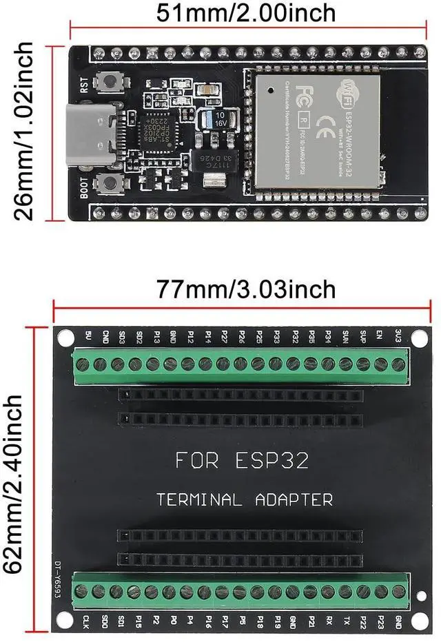 platedNote: Only compatible with 38 PIN and No Mounting Hole Version ESP-WROOM-32 development boardESP32