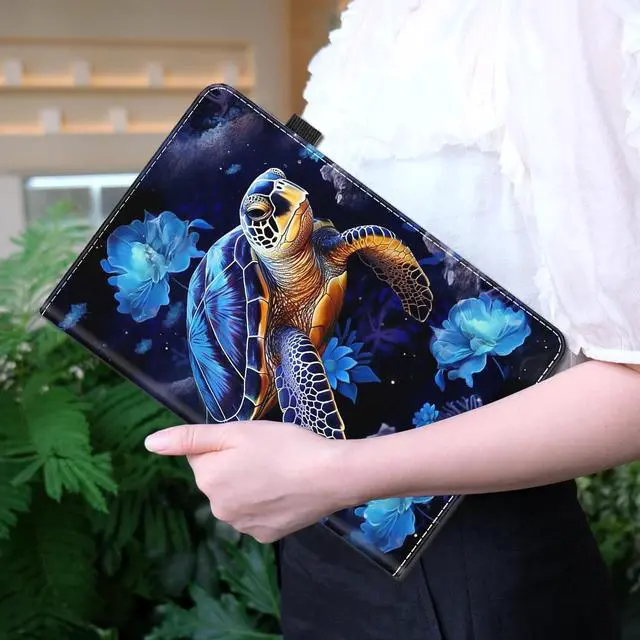 Case Fits All-New Kindle Fire HD 8 & 8 Plus Tablet(12/10th Gen,2022/2020 Release) - Slim Fit Standing Cover with Auto Sleep/Wake for Fire HD 8 & 8 PlusBlue Flowers & Sea Turtle