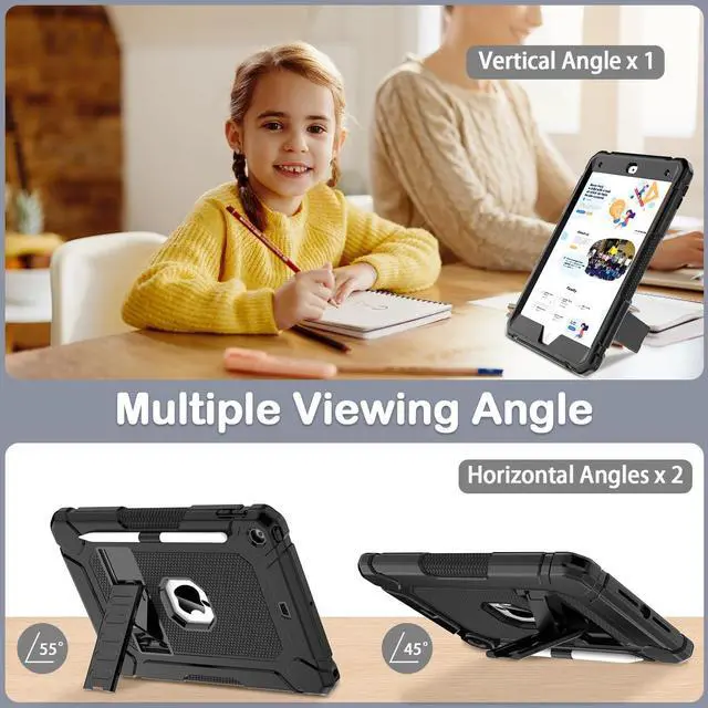 • Different Viewing AnglesThe stand on the back of the iPad case can be rotated at different angles for you to use it for different needs, such as watching movies, making video calls, playing games and so on.