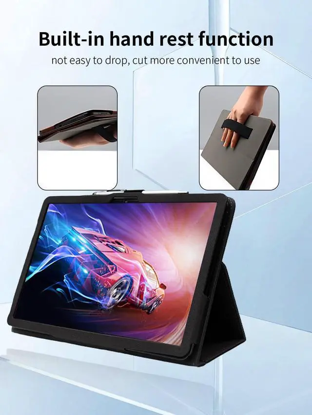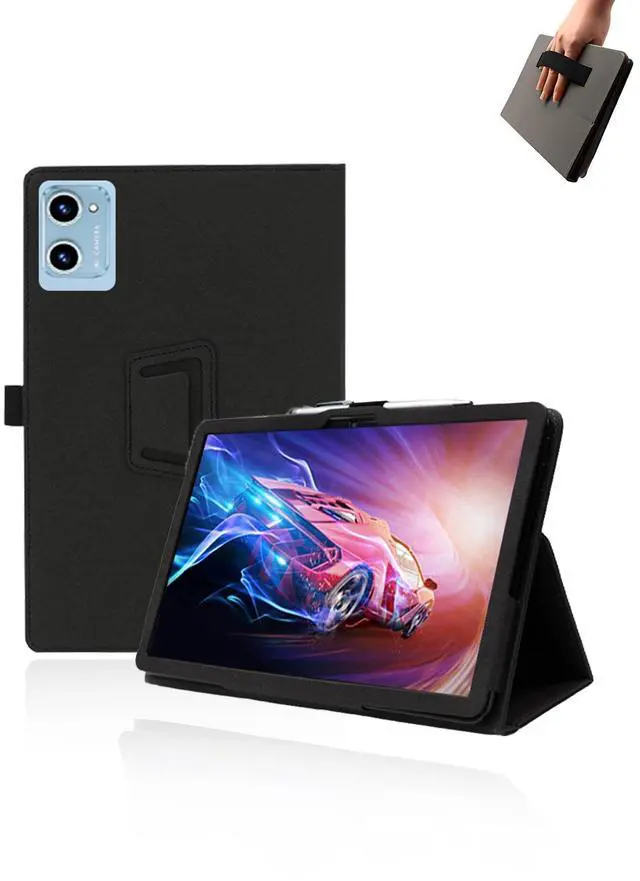 Case for DEERTiME E15 Android 14 Tablet 10.1 inch Tablets,10.1 inch Tablet,UYRUREL Leather Slim Folding Stand Cover with Hand Strap Magnet for Men Women Full Protection,Black.