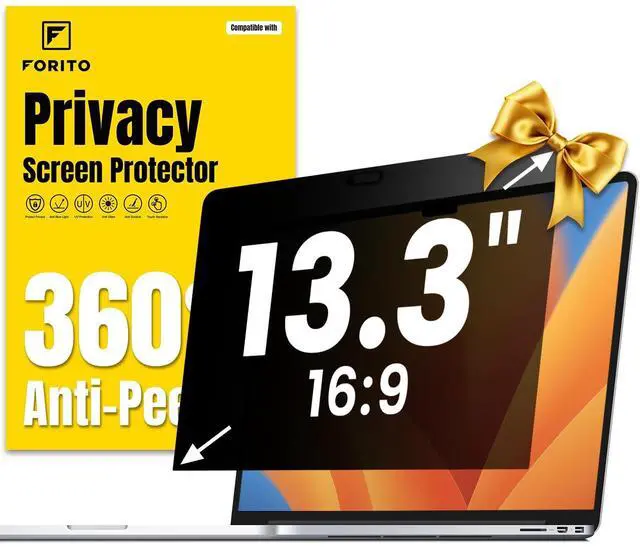 Compatible ModelThis laptop privacy screen 13.3 inch is specially compatible with 13.3" laptops with 16:9 aspect ratio. Please verify your computer screen's length and width measurements before ordering ^^ Upgraded 360 anti-peeping film With its innovative 360 privacy design, F FORITO 13.3 inch privacy screen for laptop offers unparalleled protection for your personal information. By effectively restricting the viewing angle to only the user in front, it prevents unauthorized individuals from seeing your display from the sides or behind ^^ Prioritize Eye Health This 13.3 inch computer privacy screen protects your eyes with anti-glare and anti-blue light technology.
