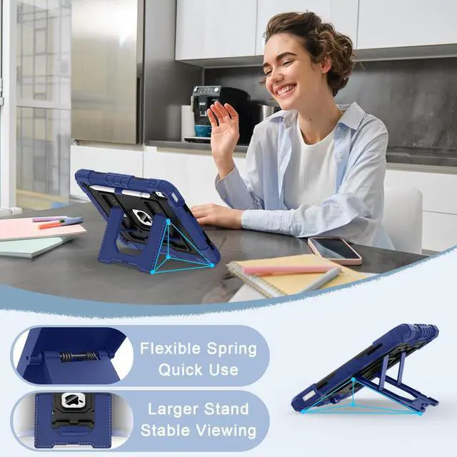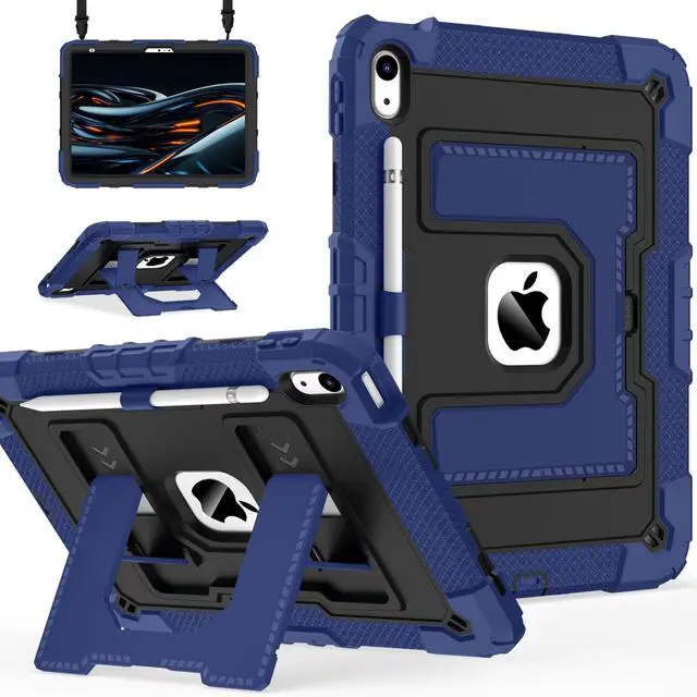 Scnioy Case for iPad (A16) 11th Generation 11 Inch 2025, iPad 10th Generation Case 10.9 Inch 2022, Heavy Duty i Pad Cover 10th Gen with Large Kickstand Pen Holder Shoulder Strap, Navy Black