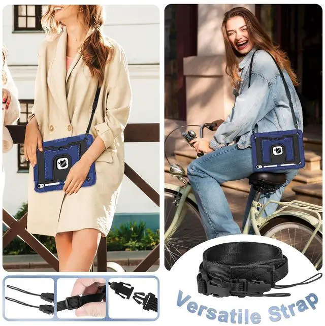 • Portable Shoulder Strap Comes with a detachable and adjustable shoulder strap, easily carry around and get a quick grab on your iPad while youre on the go. Double security for kids dropping or scratching. Ideal for outdoor activities or school