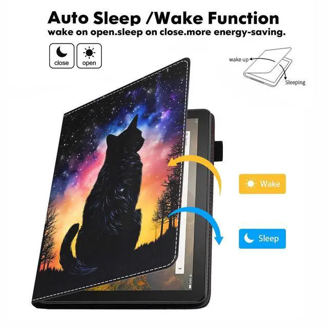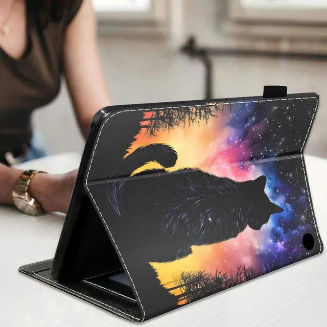 stmedazm Case for All-New Fire HD 10 & 10 Plus Tablet 10.1" (13th/11th Generation, 2023/2021 Release), Slim Stand Folio Cover with Card Slot & Auto Wake/Sleep, Black Cat Under The Starry Sky