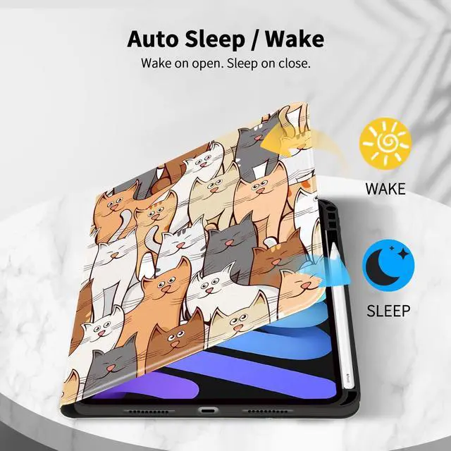 Auto Wake/Sleep: This case features a unique magnetic clasp that automatically wakes your iPad when opened and puts the device to sleep when closed. This helps reduce battery loss and extend the standby time. ^^