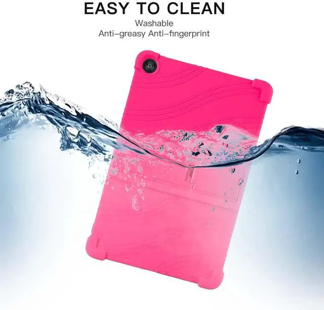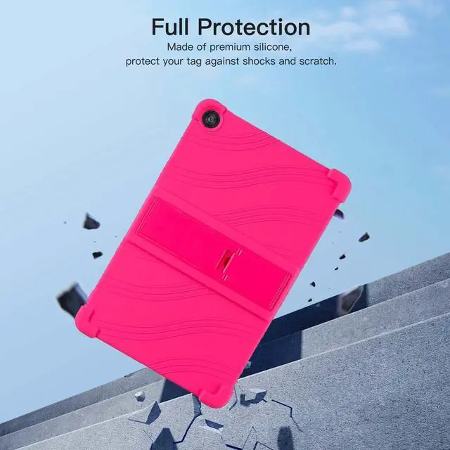 Protect your Tablet 10-inch tablet with this premium soft silicone case, designed for maximum durability and ease of use. Ideal for kids, the case features a non-toxic, eco-friendly material that provides a smooth and secure grip. The reinforced 4-corner shockproof design absorbs impacts, offering excellent protection against drops and bumps. An integrated adjustable stand allows for hands-free viewing, perfect for watching videos, playing games, or video chatting. Precision cutouts ensure full access to all buttons, ports, and cameras without removing the case, while its lightweight design keeps your tablet easy to handle.