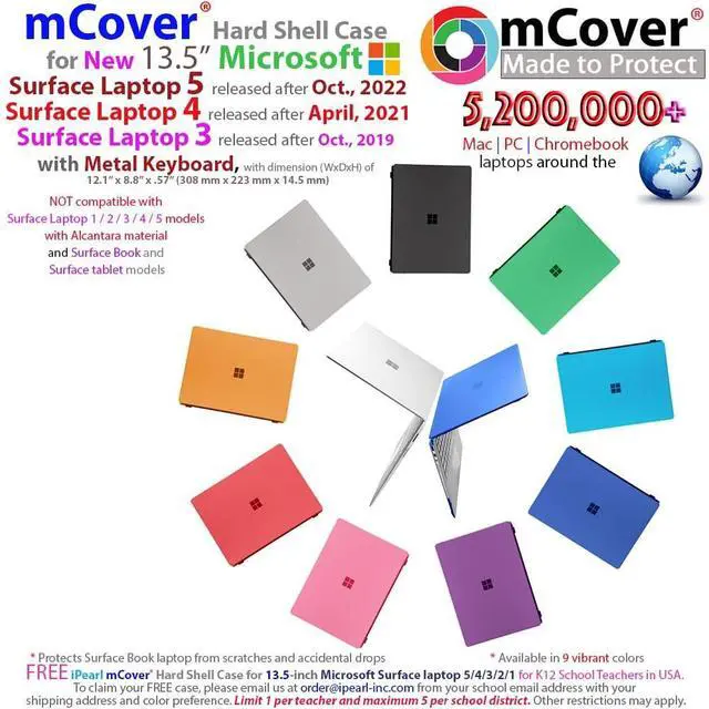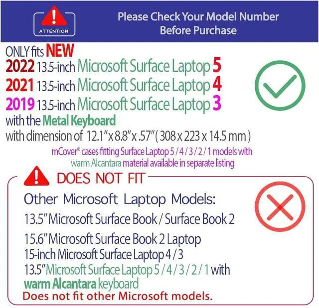 NOTE: Before placing order, PLEASE make sure to verify your laptop model number as this case is MODEL specific and NOT interchangeable. ^^ NOT compatible with the 13.5 -inch Surface Laptop 1 / 2 / 3 / 4 with Alcantara keyboard, all Surface Book models, all Surface tablet computer and any other non-Microsoft computer models ^^ Made of high-quality translucent polycarbonate material, which is shatter-proof and will protect your 13.5 -inch Microsoft Surface Laptop (4 / 3 ) Computer with Metal Keyboard all around. ^^ Designed to perfectly fit the 13.5 -inch Microsoft Surface Laptop (4 / 3 ) Computer with Metal Keyboard and protect ALL corners. ^^ 2-piece light-weight ( 10.2 oz or 289 g) shell easily snaps on and off.