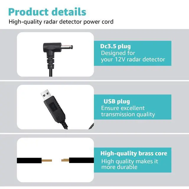 Reliable Operation: Equipped with advanced 5V to 12V chip technology, the straight cable guarantees stable power delivery to your radar detector when connected to any compatible USB interface, ensuring it operates flawlessly ^^ Premium Construction for Optimal