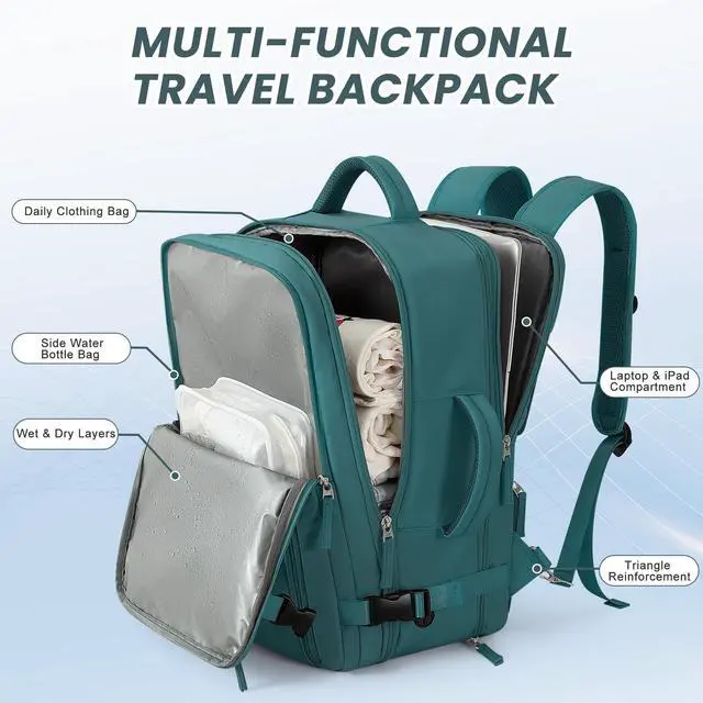 AirplanesSize of the travel backpack: 44x31x21cm/ 17.3 x 12.2 x 8.3 inches, suitable for placing on the top or under the seat in airlines as personal item. This versatile travel backpack meets the carry on requirements of most airlines, such as Easy Jet, Spirit, Frontier, Jet Blue. The 180 degree zipper closure can help you pass the security check quickly. (