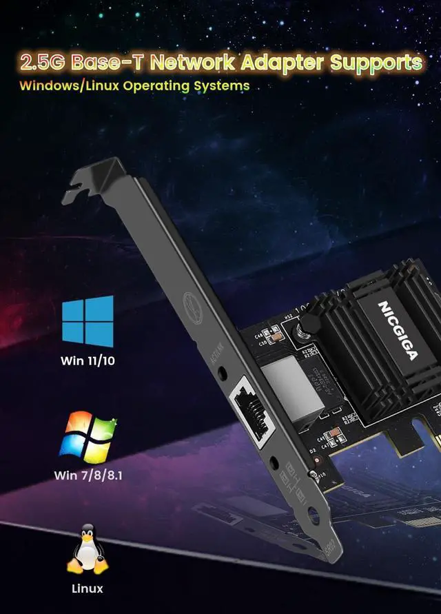 [Super-fast 2.5G bps Networking] High up to 2.5 x-speed with Realtek RTL8125B chip, much faster data-transfer speeds for gaming, living broadcasts and downloads in bandwidth-demanding tasks. ^^ [Complete Compatibility] Seamless backward compatibility for 2.5G bps/1Gbps/100Mbps, Support Windows11/10/ 8.1 /8/7, MAC OS and Linux, no dirver needed on Windows10, easily download the driver in Realtek official website for other OS. ^^ [PCIe to 2.5G RJ45] This 2.5GBASE -T PCIe Network Adater convers a PCIe slot(X1/X4/X8/16) into a 2.5G RJ45 Ethernet Port.