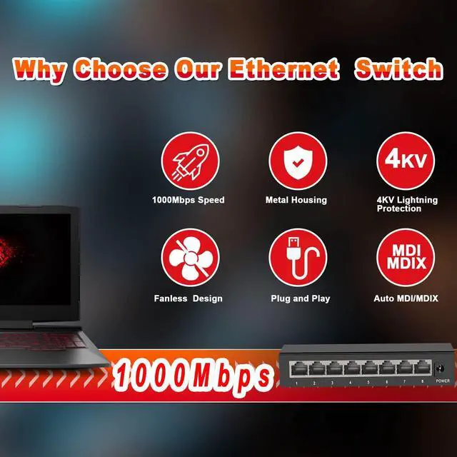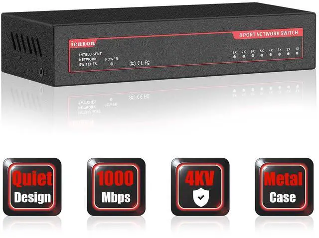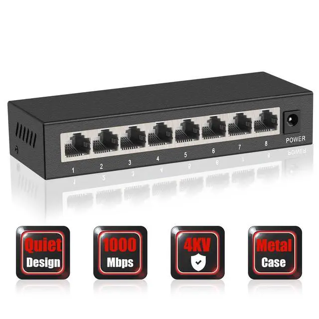 (Note: It's not PoE Switch) ^^ Easy to Use, Plug & PlayUnmanaged network switches are very simple to operate, plug and play. Each port supports MDI/MDIX auto-flip and duplex/rate auto-negotiation. Easy setup with no software installation or configuration needed ^^ Safer and reliableIEEE 802.3X flow control provides reliable data transfer. The Ethernet switch uses a small metal shell to support desktop or wall mount. The unmanaged switch adopts multi-layer baking varnish low-temperature process, which can adapt to the bad environment of 5-50, does not rust, and is corrosion-resistant. Fanless design, always working quietly. ^^ 4KV Lightning ProtectionThis series Ethernet splitter designed with lightning protection, it can withstand 4000 volts or more lightning, and prevent circuit failure. Built-in protection circuit. When a short circuit or overload occurs, the port will automatically fuse to protect the safe operation of the switch and other ports. ^^ Metal Case Design & PortableThe metal design giving well protection for the ethernet switch, and meanwhile, it is easy to take with the mini and light-weighted size. Wide application rangeThis Ethernet switch is widely and fully compatible, applicable to IP monitoring and AP equipment, shopping malls, communities, schools, hospitals, parks, hotels, small and medium-sized enterprises, etc.