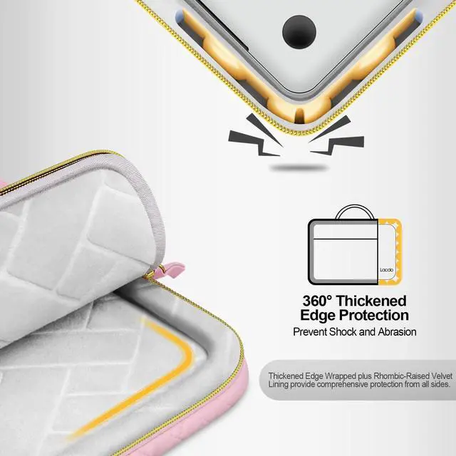 Pattern Fluffy Lining: Ultra-soft velvet lining of the laptop sleeve case bag delivers antistatic property to prevent the creation of static electricity, minimize the risk of static-related damage, enhances your device longevity. The cushy velvet layer is also designed with Rhombic-Raised pattern which is anti-scratch and shock absorption guarding against scratches and damages, enhance laptop storage comfort, offer soft and sturdy protection.