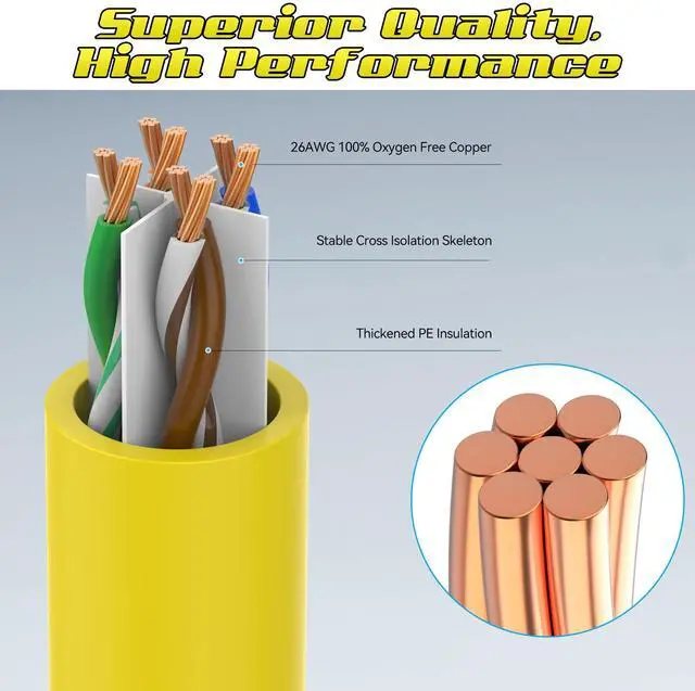 Premium Quality: Constructed with a 26AWG pure copper core, PVC jacket, UTP (unshielded twisted pair) design, and gold-plated RJ45 connectors, ensuring minimal interference and latency for optimal data transmission ^^