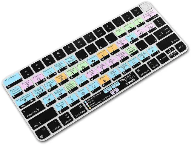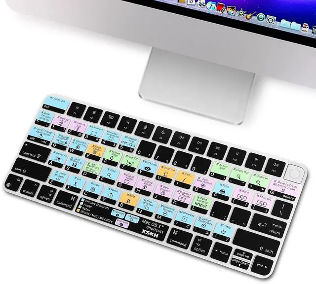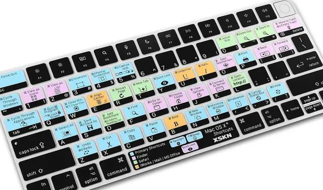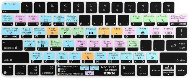 • XSKN US version macOS Mac OS X shortcuts silicone keyboard skin, QWERTY character layout in English, provide macOS software user, especially those do not familiar with the shortcuts hotkeys, you can edit and organize your projects faster and easier, color coded on shortcuts keys can easy for identification and usability, help to increase your work efficiency