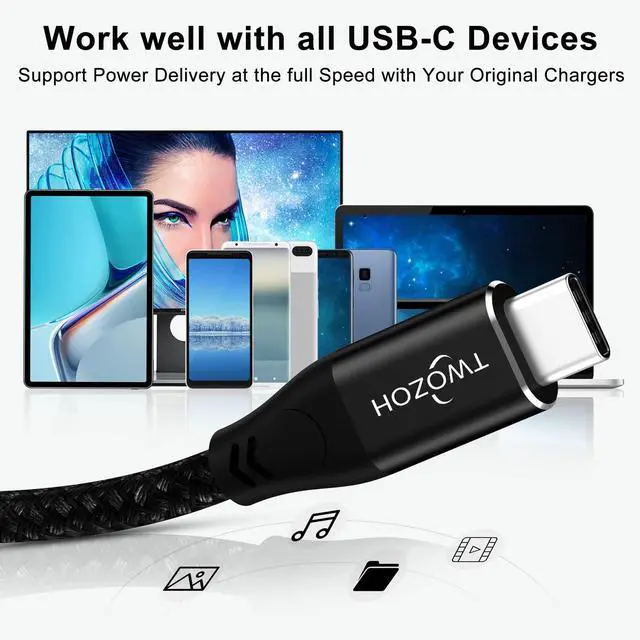 The double sided USB C connectors come with a hard rubber end thats designed for frequent insertions and tight connection without disconnecting. ^^ Nylon braided cable with reinforced joints provides long life and tangle free performance. Strain relief design and solid aluminum shield make the cable durable and reliable. ^^ Twozoh offer 12 months warranty for this USB C Cable. Please feel free to contact us for a replacement if it has any quality issue within warranty.