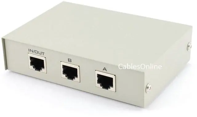 RJ45 Female Input/Output: This compact fully shielded metal RJ45 network switch box allows a solid push-button connection between consoles. It's small size allows it to fit in condense spaces. The reliable stern metal casing also prevents unwanted EMI/RFI Interference.