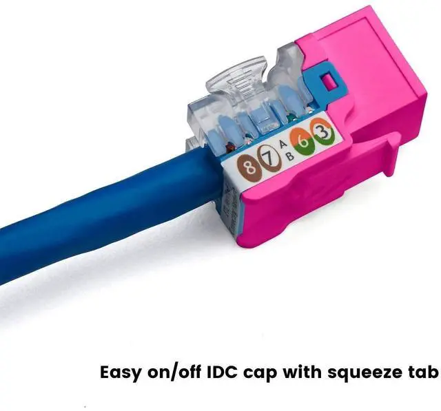 100% compatible with any standard wall plate or patch panel. Compatible with our trueTERM (B088MLZXWQ) termination, trueIMPACT (B088N5MQYH), and U/UTP Ethernet cables. ^^ QUALITY GUARANTEED. ANSI/TIA 568 2. D Certified by trueCABLE. UL Listed, TAA compliant, ETL Verified, RoHS-2 compliant. Tested in the real world by real installers. Backed by our FOREVER WARRANTY. ^^ 24 PIECE BOX. Each keystone includes an IDC cap along with with full instructions on how to terminate.