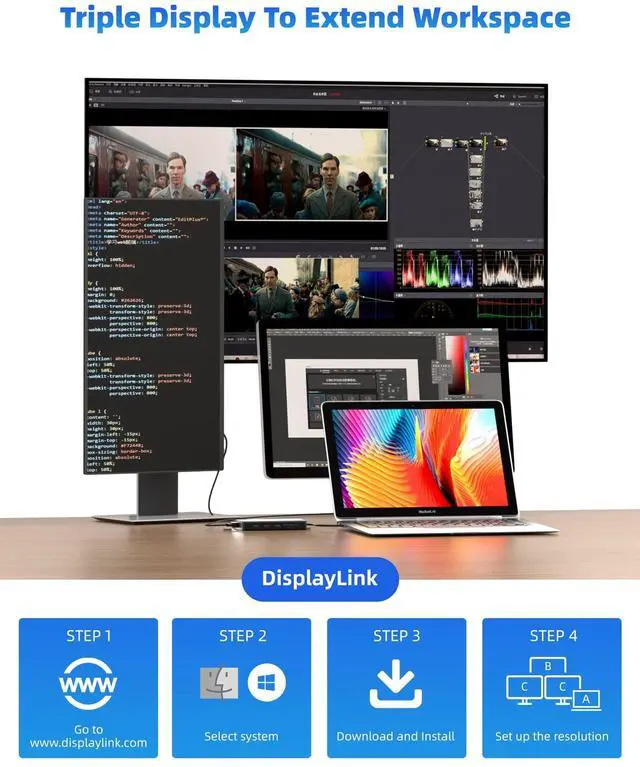 MST EXTEND TRIPLE DISPLAY FOR MAC OS & WINDOWS: Made of the latest smart chip, just need to download the drivers (free), the docking can break the single-stream limitation of macOS. Mosirui USB Docking Station provides mirror mode (SST) and extended mode (MST) for both macOS & Windows systems, which is perfect for picture editing, online teaching, video chatting, and so on.