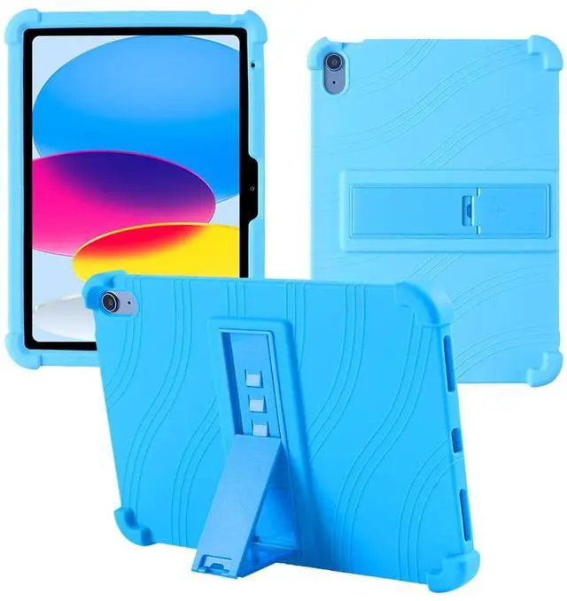 Case for iPad A16 2025 NewShock Proof Lightweight Stand Rubber Shell Protective Cover,Kids Friendly Soft Silicone Adjustable Stand Cover for iPad A16,LIGHTBLUE