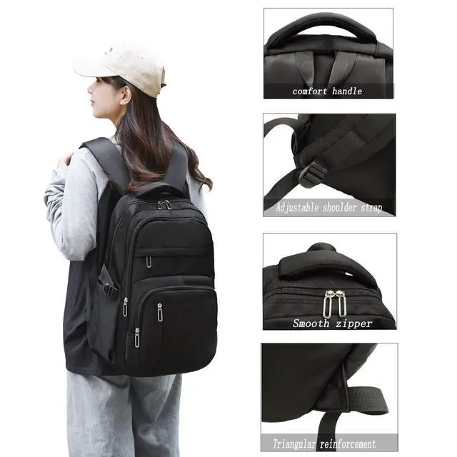 Excellent Size: This backpack for school measures 11.8 ''x 6.7 ''x 17.7 '' (L*W*H). It can fit a 15.6 -inch laptop. And there is a electronic compartment inside the main pocket, which can protect your computer and Tablet computer so on. The classic and minimalist design makes this college backpack more stylish and easy to wear with any outfit.