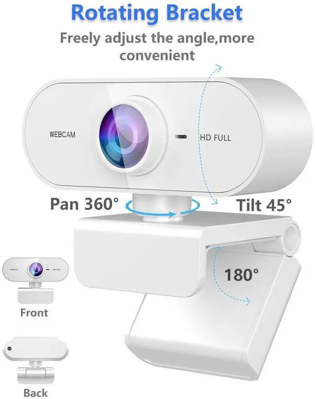 Webcam 1080P HD,Web cam with Microphone, Noise Cancellation, Wide-Angle Lens, Auto Light Correction, Plug & Play USB Webcam for Laptop, Desktop, PC, Mac, Zoom, Skype, Streaming,White