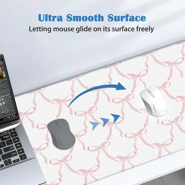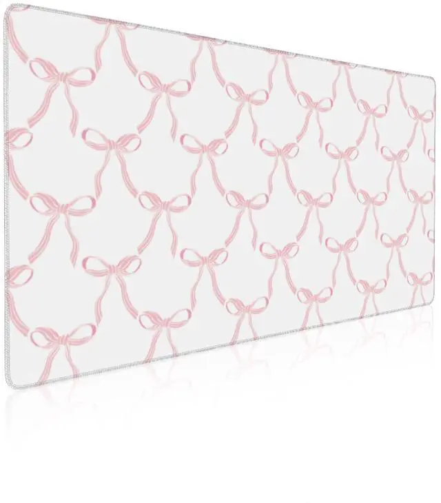 Mouse Pad Pink Large Gaming Mouse Mat with Stitched Edges Bows Non-Slip Rubber Base Mous Mat for Office Computer Keyboard Laptop Home(31.5X15.7 in)
