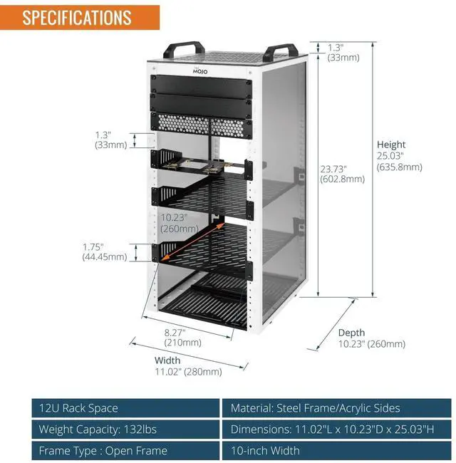 Durable Steel & Acrylic Construction: Constructed from high-strength steel with premium acrylic side panels, this rack offers outstanding durability and stability - perfect for NAS, custom clusters, and sensitive electronics ^^ Open-Frame & Translucent