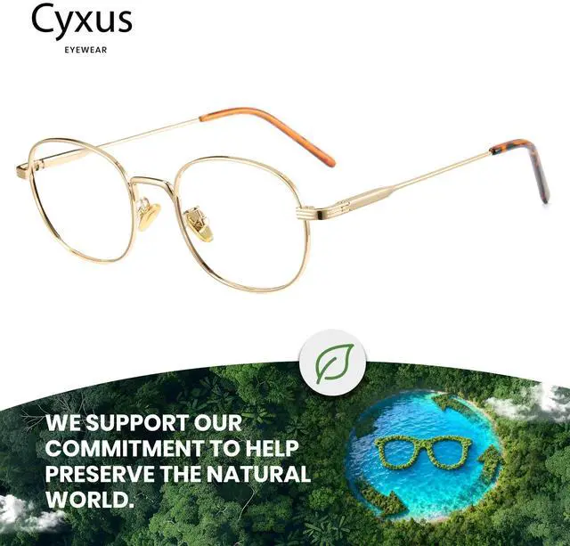 Lenses: Cyxus blue light glasses for women men with 99% Blue Light Block, 98% Clarity Equipped with uniquely developed PC lenses, these eyewear glasses effectively filter out 99% of harmful blue light while maintaining 98% transparency for crystal-clear vision. And also 99.99 % UV400 protection.