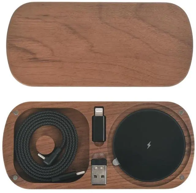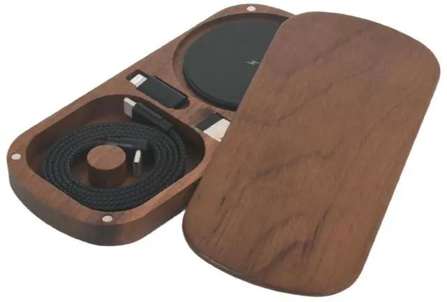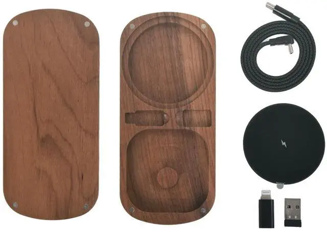 Multi USB Charger Adapter Charging Cable, Type C to USB OTG Converter, USB C to iOS, Portable Box for ( Walnut)