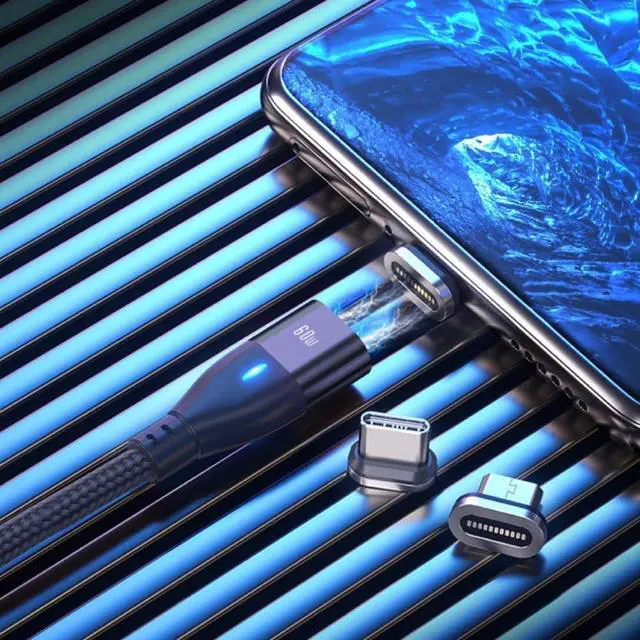 PD 60W Fast Charging:This magnetic charging cable is upgraded with PD 60W technology, taking charging speed to the next level. Type-C output: 20V/3A, delivering high-speed and safe charging performance, and supporting data transfer.