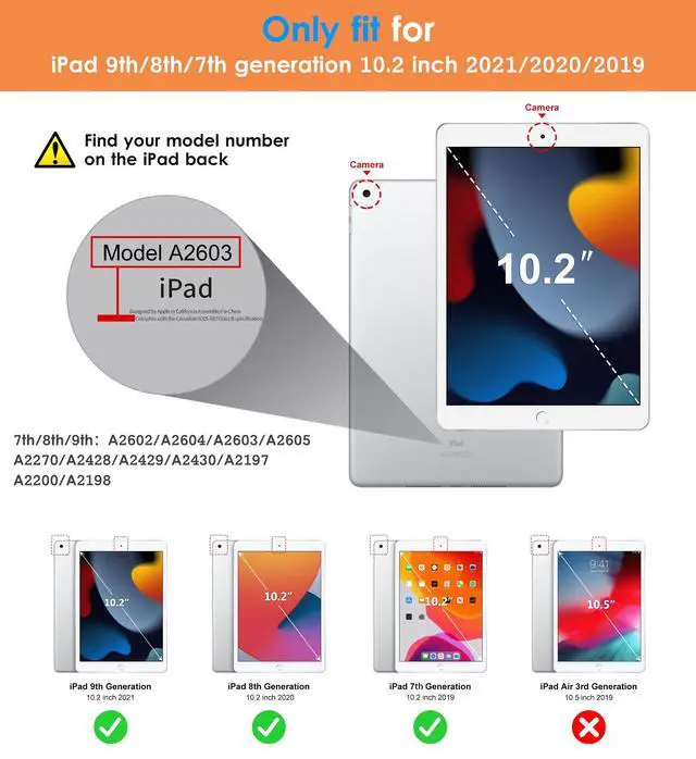 Specifically designed for the Apple iPad 9th/8th/7th generation 10.2" 2021/2020/2019 released(Model
