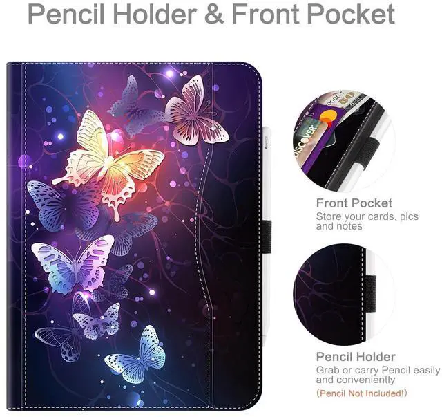 SET: to find settings--generals--lock/unlock to slid the lock and unlock button to make it green then the smart function is enabled. Otherwise the screen could not shut down. ) ^^ Adjustable Angle-- Vimorco Case for iPad (A16) 11th Generation 11 Inch 2025, for iPad 10th generation case 10.9 inch 2022 With three anti-slip stripes design for iPad to sit in to stabilize it, never slips when you have it in a tilting position. You can easily adjust it to different angle positions to create a stand for viewing, video watching and reading at home, or presenting in style at your meeting. ^^ Pencil holder & Front Pocket-- Vimorco Case for iPad (A16) 11th Generation 11 Inch 2025, for iPad 10th generation case 10.9 inch 2022 come with Pencil holder, this design to grab or carry Pencil easily and conveniently (Pencil is NOT Included! ). The Front Pocket on the front for you to store your cards, pics and notes. ^^ Internal Hand Strap & External Elastic Protection Band-- The Convenient Hand Strap beside the stripes enables you to hold it more stable when stays upright. Same comfort for single-handed use.
